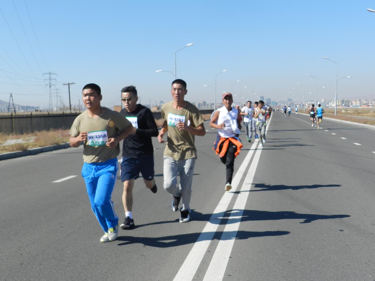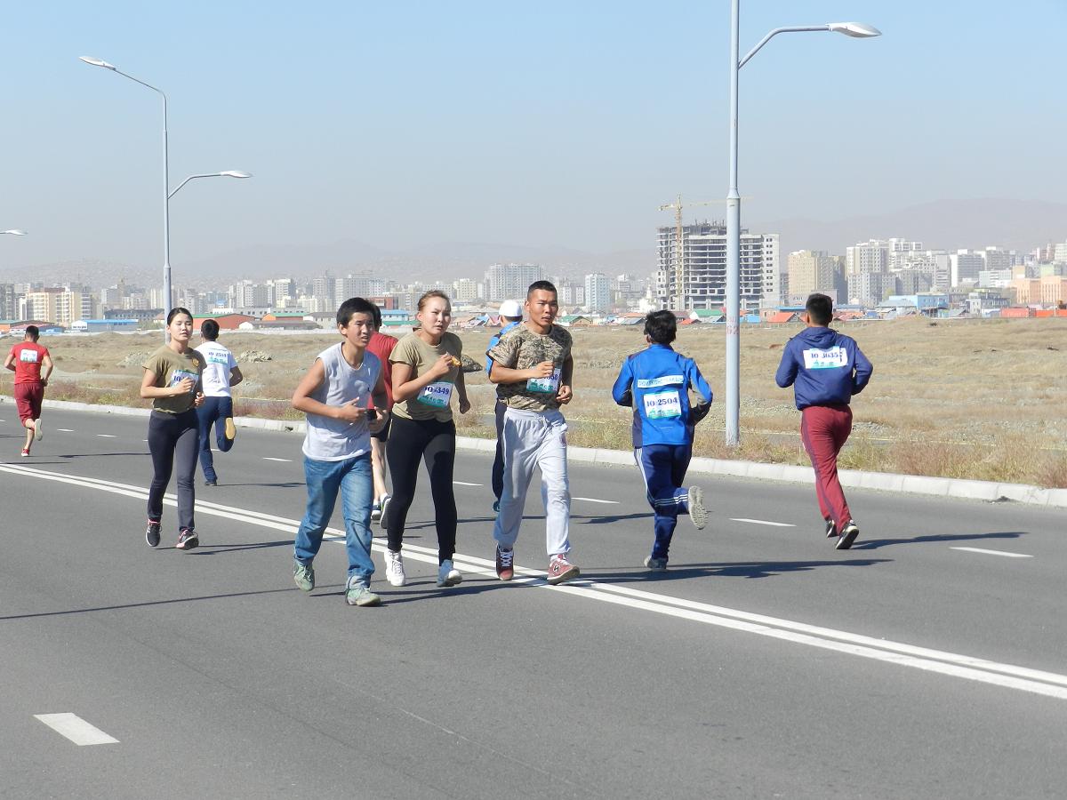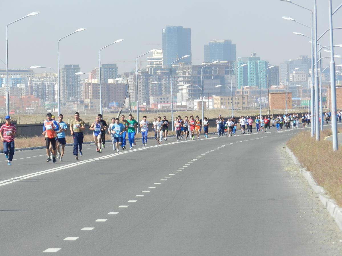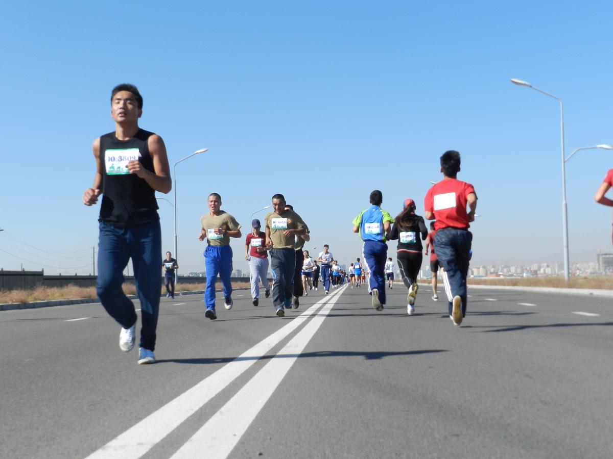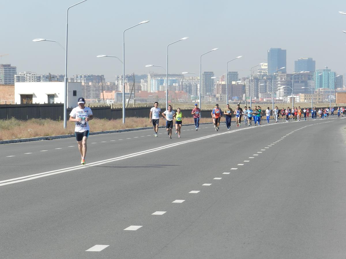 DSCN8207Марафон гүйлтийг “УТААГҮЙ  НИЙСЛЭЛ” нэртэйгээр “Цэвэр агаар–Эрүүл амьдрал” уриан дор Шадар Сайдын Ажлын алба, ЭМСЯ, БОНХЯ, БСШУЯ, БХЯ, ХЗЯ, БХБЯ зэрэг төрийн болон төрийн бус маш олон байгууллагатай хамтран 4 км,  10 км, 21 км-ийн зайд оролцогчдыг хамрууллаа.