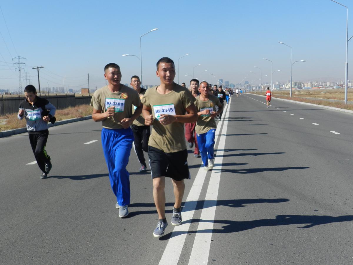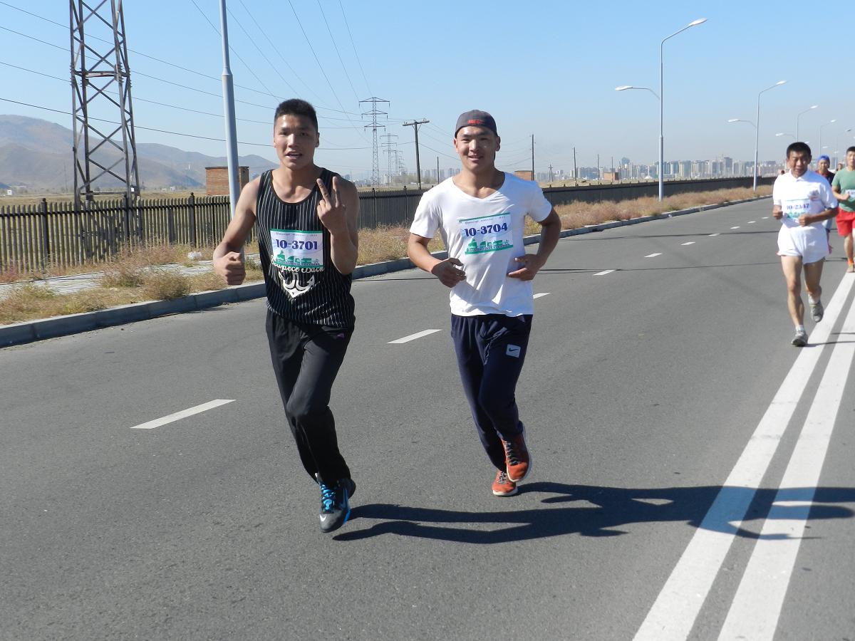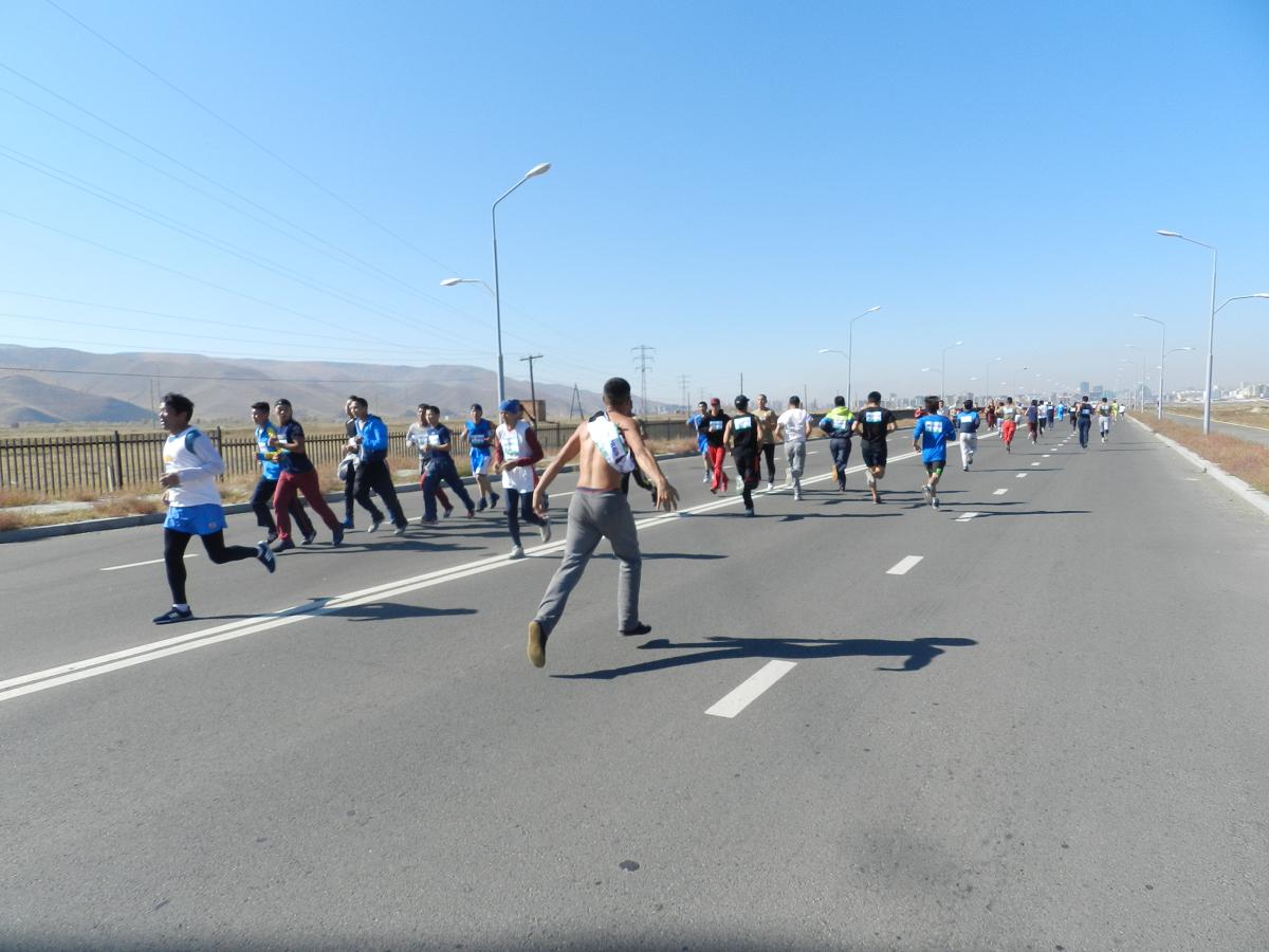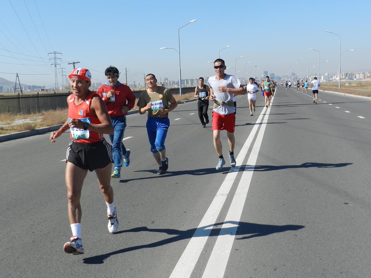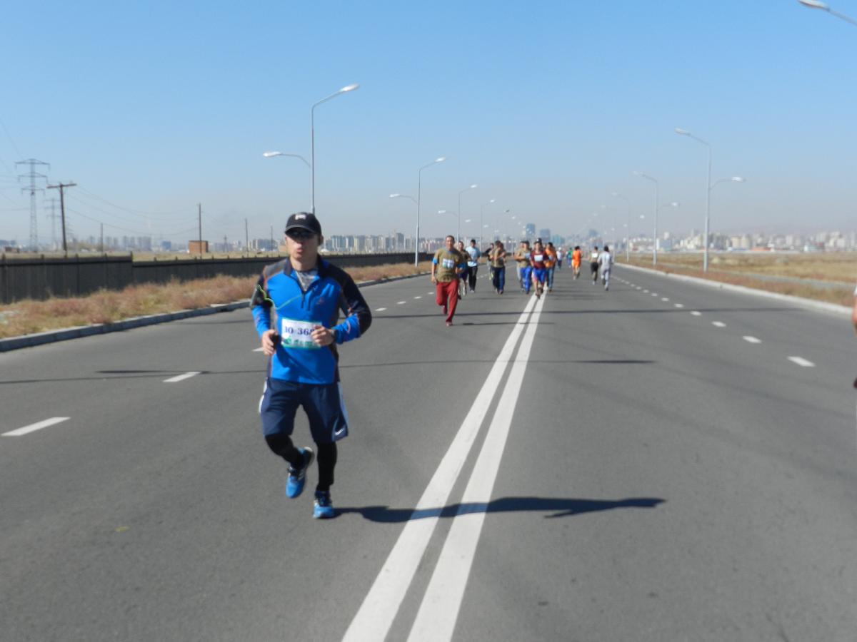 DSCN8207Марафон гүйлтийг “УТААГҮЙ  НИЙСЛЭЛ” нэртэйгээр “Цэвэр агаар–Эрүүл амьдрал” уриан дор Шадар Сайдын Ажлын алба, ЭМСЯ, БОНХЯ, БСШУЯ, БХЯ, ХЗЯ, БХБЯ зэрэг төрийн болон төрийн бус маш олон байгууллагатай хамтран 4 км,  10 км, 21 км-ийн зайд оролцогчдыг хамрууллаа.