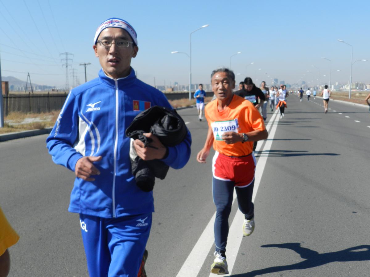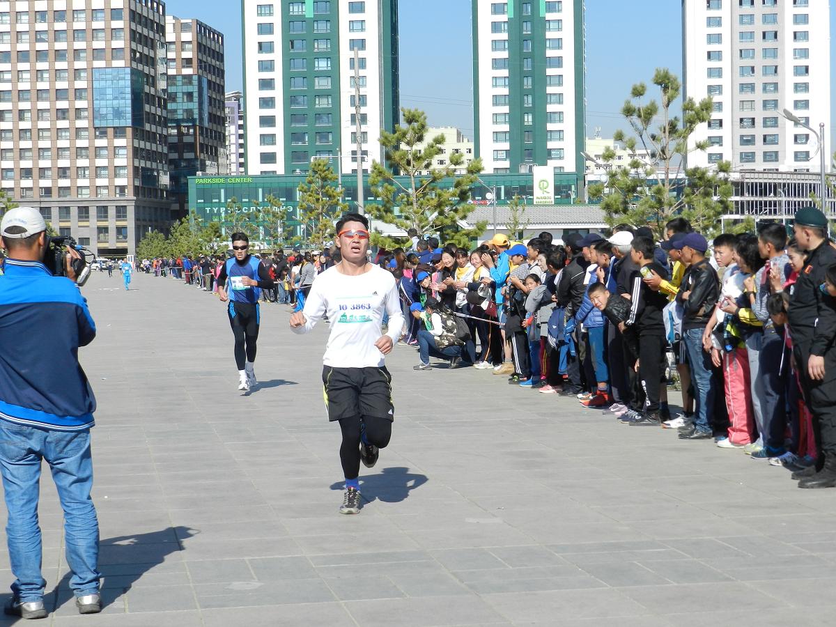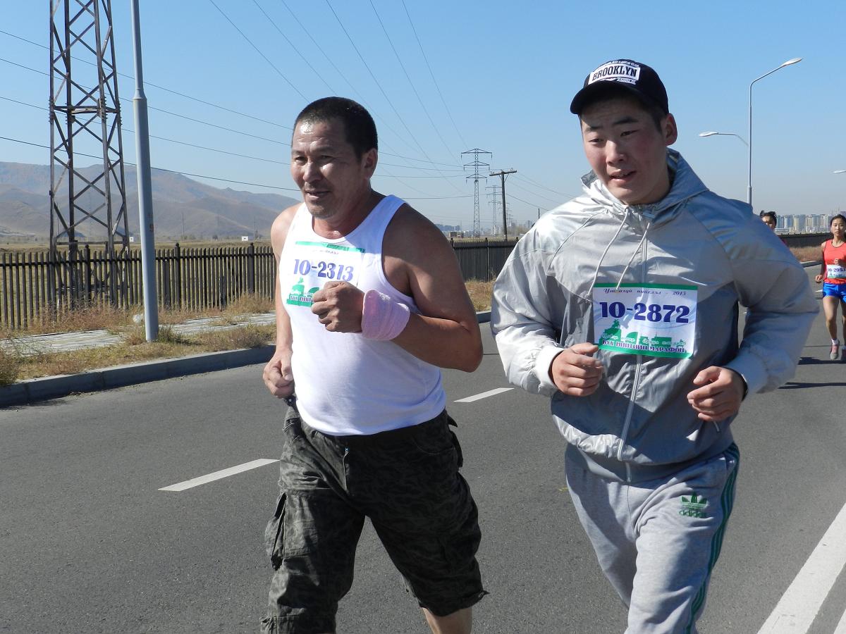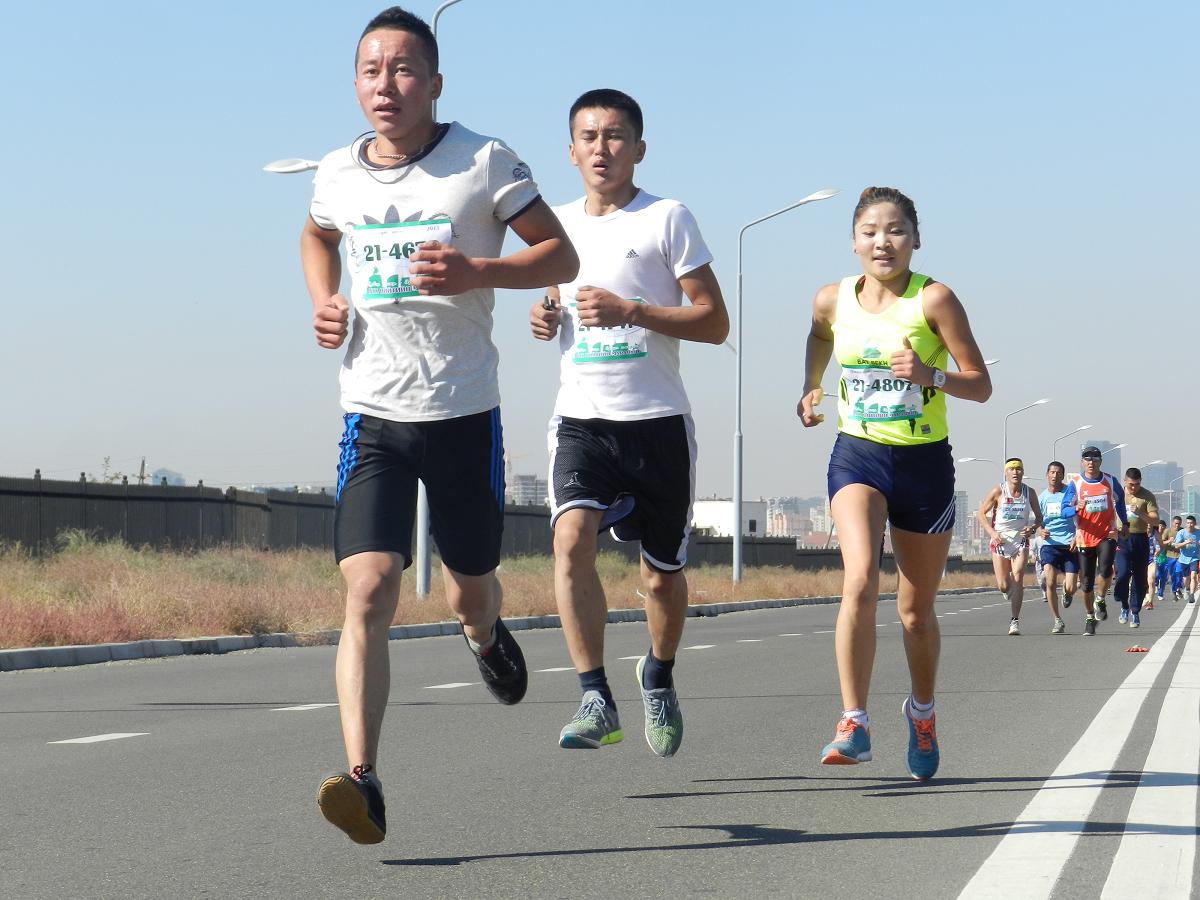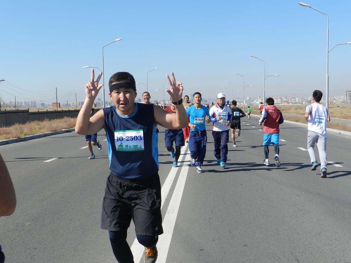 DSCN8207Марафон гүйлтийг “УТААГҮЙ  НИЙСЛЭЛ” нэртэйгээр “Цэвэр агаар–Эрүүл амьдрал” уриан дор Шадар Сайдын Ажлын алба, ЭМСЯ, БОНХЯ, БСШУЯ, БХЯ, ХЗЯ, БХБЯ зэрэг төрийн болон төрийн бус маш олон байгууллагатай хамтран 4 км,  10 км, 21 км-ийн зайд оролцогчдыг хамрууллаа.