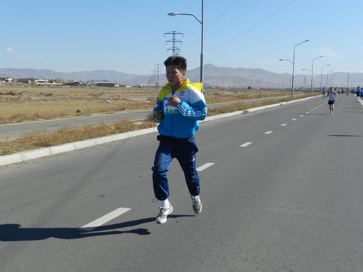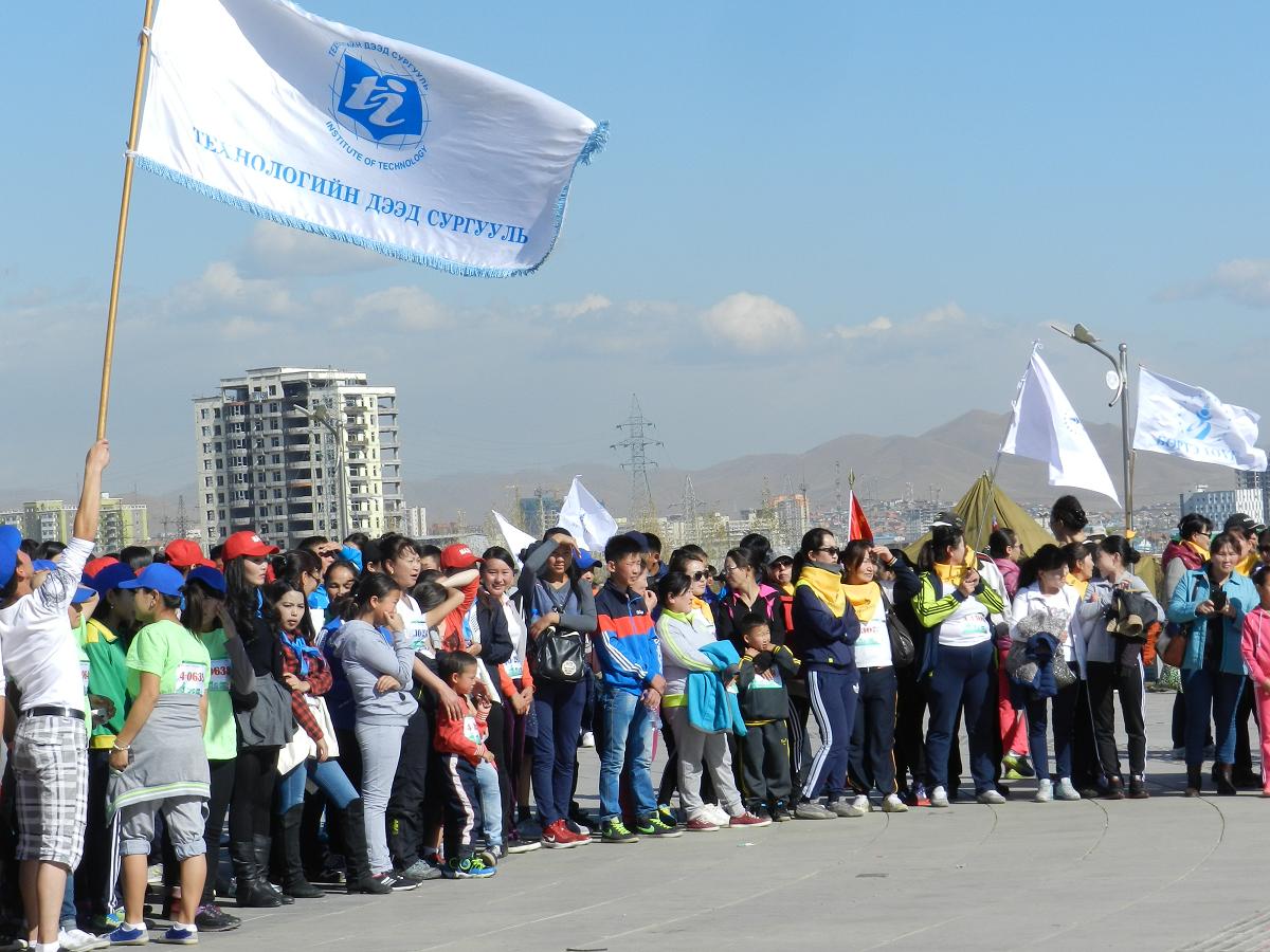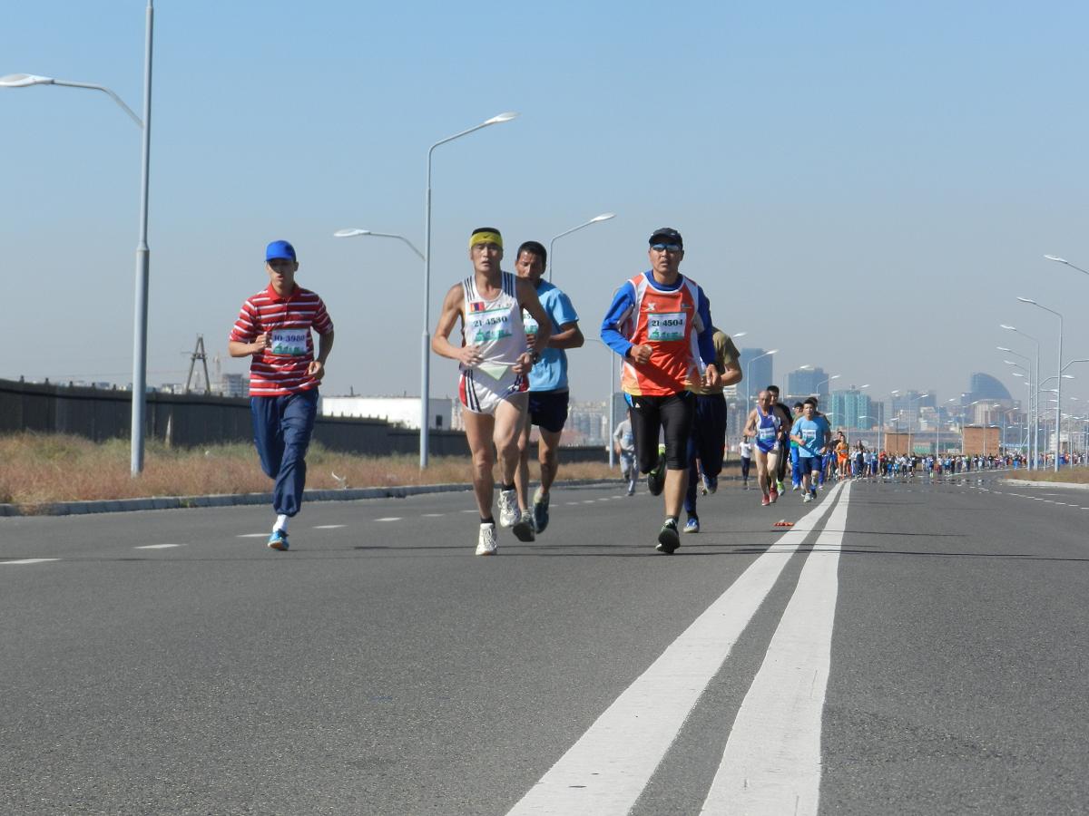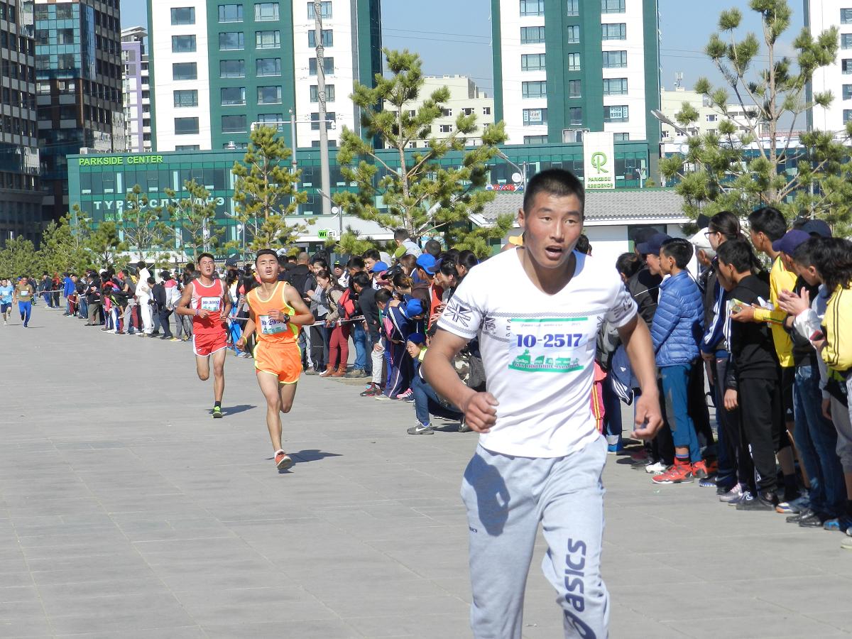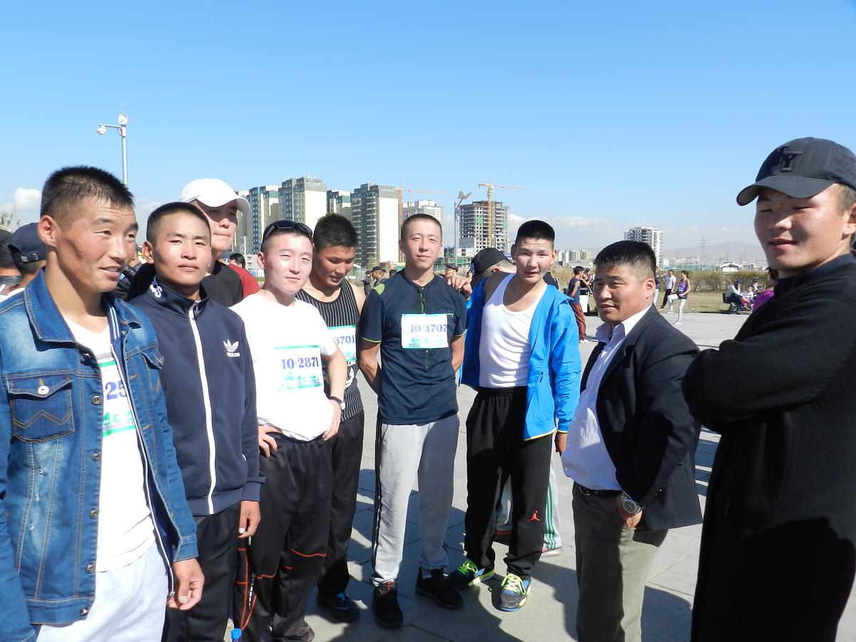 DSCN8207Марафон гүйлтийг “УТААГҮЙ  НИЙСЛЭЛ” нэртэйгээр “Цэвэр агаар–Эрүүл амьдрал” уриан дор Шадар Сайдын Ажлын алба, ЭМСЯ, БОНХЯ, БСШУЯ, БХЯ, ХЗЯ, БХБЯ зэрэг төрийн болон төрийн бус маш олон байгууллагатай хамтран 4 км,  10 км, 21 км-ийн зайд оролцогчдыг хамрууллаа.