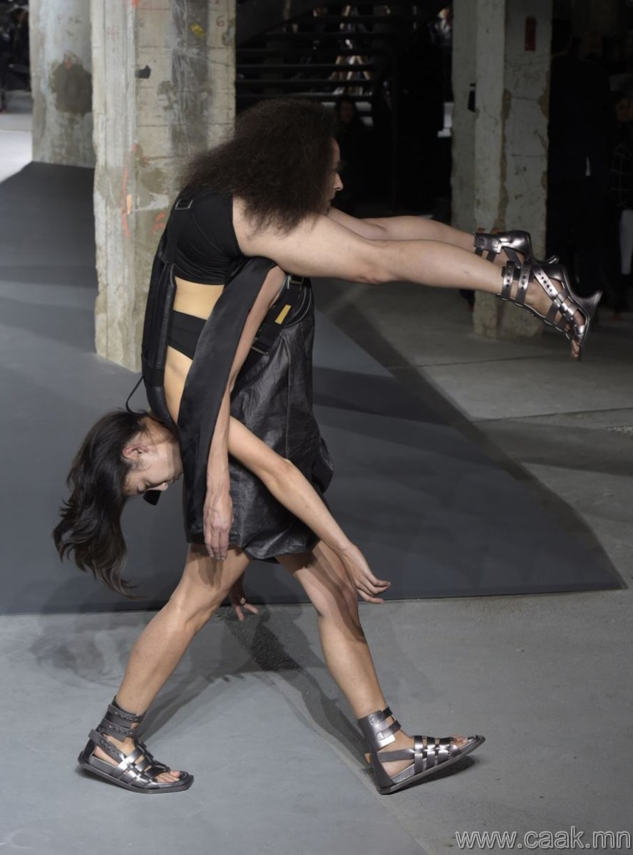 03Загварын шоуны үеэр бидний санаанд оромгүй, бүр хэзээ ч өмсөхгүй гэмээр хачин хувцаснуудыг танилцуулдаг байсан. Гэвч саяхан буюу пүрэв гарагт “Paris Fashion Week” шоуны үеэр Rick Owens загвар зохион бүтээгч “2016 оны зуны загвар”-ын танилцуулга шоуны үед хачирхалтай үзүүлбэр бэлджээ.