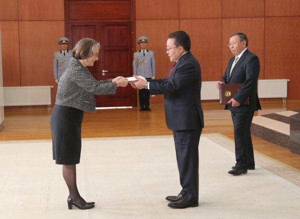 Монгол Улсын Ерөнхийлөгчид өнөөдөр Бүгд найрамдах Франц Улсаас Монгол Улсад суух Онц бөгөөд Бүрэн эрхт Элчин сайд хатагтай Элизабет Барсак Итгэмжлэх жуух бичгээ барив.