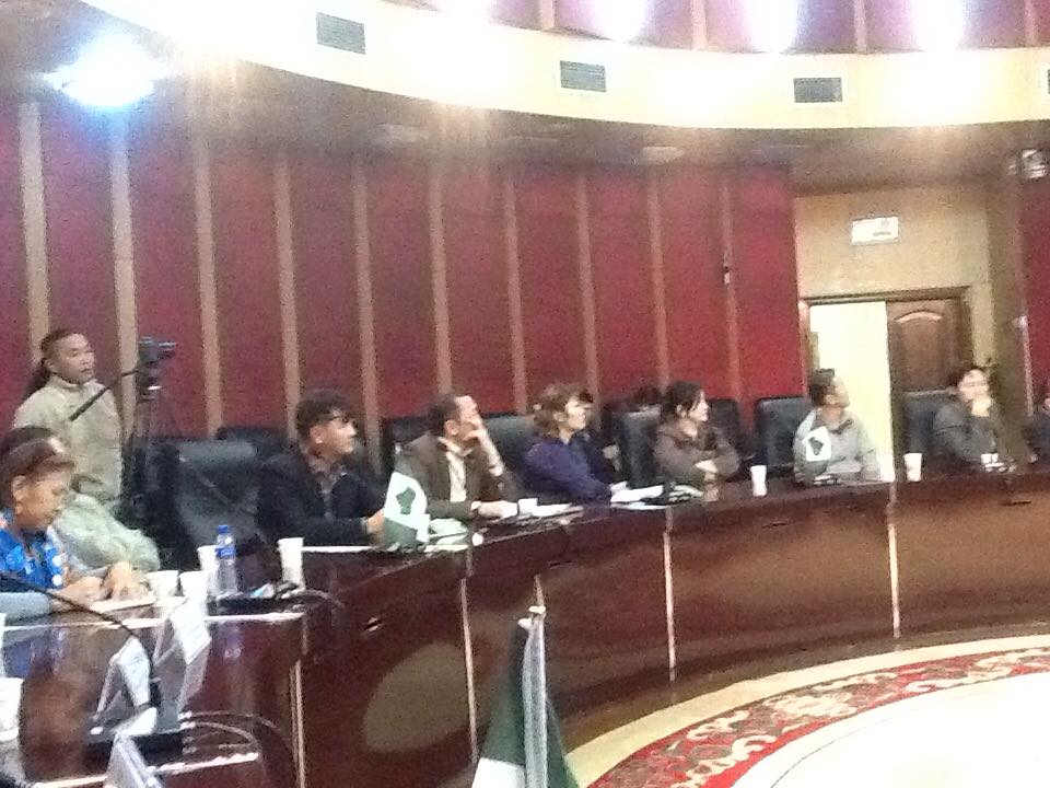 12179552_1013992265288581_309628735_nӨнөөдөр Монголын Ногоон намаас санаачлан Засгийн газрын 11-р байрны хурлын дугуй зааланд “Хямрал ба дөрөвдэх засаглал” сэдэвт онол практикийн бага хурлыг 10:00-13:00 цагийн хооронд зохион байгуулж байна. Энэхүү хуралд МСНЭ-ийн Ерөнхийлөгч Б.Галаарид тэргүүтэй Монголын Сайтын Холбоо, Монголын өдөр тутмын сонинуудын холбоо, Монголын телевизүүдийн холбоо, Монголын ФМ-ын холбоо зэрэг хэвлэл мэдээллийн байгууллагын холбоод болон МУИС-ийн сэтгүүл зүйн тэнхимийн багш судлаачид оролцон илтгэл тавьж, мэдээлэл солилцож байна. МНН-ын дарга О.Бум-Ялагч тавьсан илтгэлдээ: “… Монголын хэвлэл мэдээллийн орон зайд, тэр тусмаа төрийн нэрийн өмнөөс 4 дэх засаглалыг “бодитой” хийж байгаа хүн бол нийтлэлч Баабар юм. Тэрбээр гадна дотноос үзүүлж байгаа санхүүгийн боломж, төрийн далд дэмжлэг, өөрийн бичлэгийн онцлогоороо дамжуулан 4 дэх засаглалыг бодитой “хэрэгжүүлж” чадаж байна гэж үзэхээр байна. Сэтгүүлчид Баабар шиг бусдын захиалгаар мэдээлэл бичиж олон нийтийг төөрөгдөлд оруулдаггүй байгаасай гэж хүсэх байна” гэлээ.12188842_1014060371948437_235747651_n