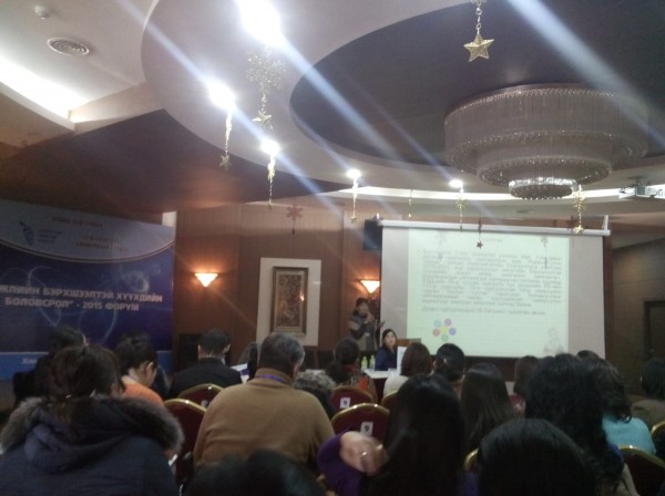 Монголын Нээлттэй Нийгэм Форумаас 2015 оны 12 дугаар сарын 21-ны өдөр зохион байгуулсан “Хөгжлийн бэрхшээлтэй хүүхдийн боловсрол-2015” форумд тус сургуулийн захирал Ч. Ганбилэг оролцлоо. Энэхүү форумд захирал Ч. Ганбилэг “ХБХ-ийг боловсролд тэгш хамруулан сургахад энгийн болон тусгай сургуулийн багш нарын хамтын үйл ажиллагааны тогтолцоог бий болгох” сэдвээр илтгэл тавьсан нь оролцогчдын анхаарлыг татсан маш сонирхолтой илтгэл боллоо.