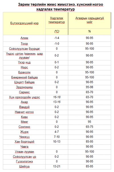 Хүнсний бүтээгдэхүүнийг хадгалж байгаа агуулах, зоорины агаарын харьцангуй чийг, температур бичил биетний хөгжилтөнд чухал нөлөө үзүүлдэг тул бүтээгдэхүүн бүрт тохирсон хадгалалтын горимыг баримтлах хэрэгтэй.