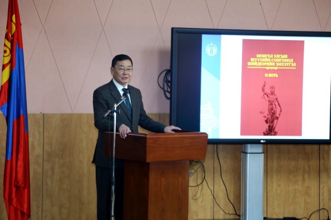 Парламент үндэсний эрх зүйг хөгжүүлдэггүй. Үндэсний эрх зүйг хөгжүүлдэг ганц субьект нь шүүх. Үүний тулд шүүхийн шийдвэрийг судалгааны эргэлтэд оруулж үндэсний эрх зүйгээ хөгжүүлэх зорилготой. “Монгол Улсын шүүхийн сонгомол шийдвэрийн эмхэтгэл” цаашдаа үе залгамжлагдан 50, 100 жилийн дараа Монголын шүүхийн хөгжлийг харуулах том толь болж үлдэнэ. Бүтээлийн нэр нь сонгоод нийтэлж байгаа гэдэг утга санааг агуулж байгаа бол 20, 30 жилийн дараа классик гэдэг утгыг агуулна гэж харж байгаа. “Монгол Улсын шүүхийн шийдвэрийн эмхэтгэл”-д бүтээл нь орсон 58 шүүгчид талархал илэрхийлье. Бүтээлд орох шийдвэрийг шилнэ гэдэг хариуцлагатай ажил. Өмнөх бүтээлд 390 шийдвэрээс шилсэн бол энэ удаад шүүгчдийн зөвлөгөөнөөс 450 шийдвэр шалгарч ирсэн. Эдгээрээс шилж сонгож 88 шийдвэрийг бүтээлд оруулах хариуцлагатай ажлыг гүйцэтгэсэн Улсын Дээд шүүхийн шүүгч, МУИС-ийн эрдэмтэн багш нар, шүүгчдэд талархал илэрхийлье” гэлээ.