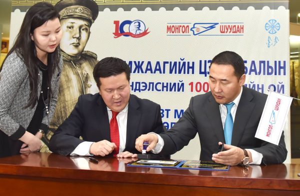 Монголын төр, нийгмийн нэрт зүтгэлтэн, БНМАУ-ын МАХН-ын Ерөнхий нарийн бичгийн дарга, БНМАУ-ын Сайд нарын зөвлөлийн дарга, Ардын Их Хурлын Тэргүүлэгчдийн дарга, Улсын баатар, Хөдөлмөрийн баатар, Маршал Юмжаагийн Цэдэнбалын мэндэлсний 100 жилийн ойд зориулсан маркийг Монгол Улсын Засгийн газрын захиалгаар хийж гүйлгээнд өнөөдрөөс гаргаж байна. Нээлтийн ажиллагаанд Монгол Улсын сайд, Засгийн газрын Хэрэг эрхлэх газрын дарга Ж.Мөнхбат, Ю.Цэдэнбалын дүү Ю.Жавзан, Юмжаагийн Цэдэнбалын Академийн тэргүүн дэд ерөнхийлөгч С.Галсан нар оролцлоо.