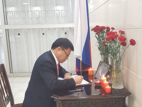 Зам, тээврийн хөгжлийн сайд Д.Ганбат ОХУ-ын Батлан хамгаалахын “ТУ-154” цэргийн нисэх онгоц осолдсонтой холбогдуулан өнөөдөр Монгол Улс дахь тус улсын Элчин сайдын яаманд эмгэнэл илэрхийлж, хүндэтгэл үзүүллээ.