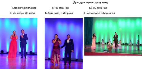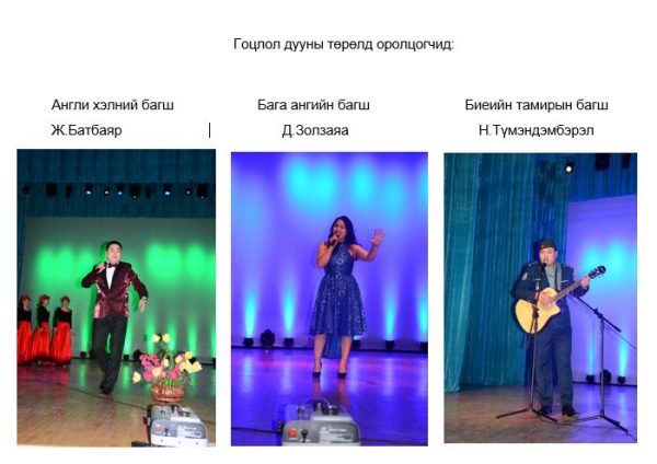 Тус наадамд бага ангийн багш нарын нэгдлийн 34 багш, нийгмийн ухааны багш нарын нэгдлийн 32, байгалийн ухааны багш нарын нэгдлийн 41, нийт 107 багш нар оролцож урлагийн Мэндчилгээ, Гоцлол дуу, Дуэт дуу, Хамтлаг бүжиг, Найрал дуу гэсэн 5 төрлөөр авъяас чадвараа өрсөлдүүлэн уралдсанаас Нийгмийн ухааны багш нарын нэгдэл Тэргүүн байр, Бага ангийн багш нарын нэгдэл Дэд байр, Байгалийн ухааны багш нарын нэгдэл гуравдугаар байр тус тус эзэлж Өргөмжлөл, мөнгөн шагналын эзэд боллоо. Багш нар цаг зав багатай ажлын хажуугаар өөрсдийгөө хөгжүүлэх урлагийн наадамд идэвх, зүтгэл гарган оролцсон нь урлагийн наадмын оролцооны байдлаас харагдлаа.