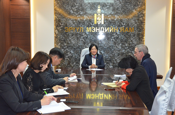 Уулзалтад Эрүүл мэндийн сайд А.Цогцэцэг, ЭМЯ-ны Бодлого төлөвлөлтийн газрын дарга Д.Төмөртогоо, Нийгмийн эрүүл мэндийн газрын дарга Д.Ганцэцэг, ГХАХ-ийн мэргэжилтэн Б.Туяа, ДЭМБ-ын Суурин төлөөлөгчийн албан үүргийг түр орлон гүйцэтгэгч Д.Нарантуяа нар оролцлоо.