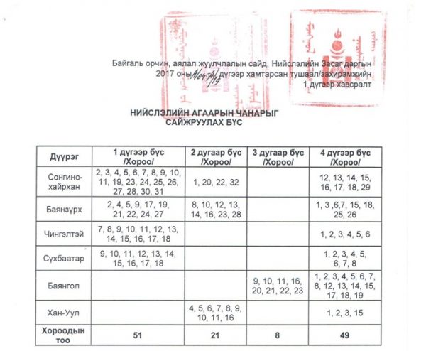 “Нийслэлийн гэр хорооллын өрхөд цахилгааны тарифын хөнгөлөлт үзүүлэх журам”-ын дагуу Эрчим хүчний зохицуулах хорооноос хөнгөлөлт үзүүлэх хугацаа, хөнгөлөлтөд хамрагдах өрхийн цахилгааны сарын хэрэглээний дээд хязгаарыг 2016 оны 248, 249 дүгээр тогтоолоор баталсан бол Байгаль орчин, аялал жуучлалын сайд, Нийслэлийн Засаг дарга нарын хамтарч гаргасан 2017 оны А/04-А/19 дүгээр тушаал, захирамжаар агаарын чанарыг сайжруулах бүсийг шинэчлэн тогтоосон.