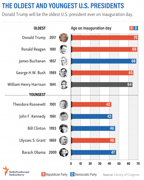 Дональд Трамп Америкийн Нэгдсэн Улсын 45 дахь удаагийн ерөнхийлөгчөөр сонгогдож ялалт байгуулсан юм. Тэрээр өнөөдөр ерөнхийлөгчийн тангараг өргөх юм. Дональд Трамп Америкийн Нэгдсэн Улсын түүхэн дахь хамгийн хөгшин ерөнхийлөгчдийн 5-дугаарт жагсаж байгаа юм.