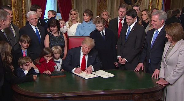 АНУ-ын 45 дахь ерөнхийлөгчөөр сонгогдсон Дональд Трамп Баасан гарагийн өглөө тангараг өргөж, албан ёсоор ерөнхийлөгч боллоо. Түүний тангараг өргөх ёслолд Ерөнхийлөгч асан Жорж Буш, Билл Клинтон болон түүнтэй хамт ерөнхийлөгчийн сонгуульд нэр дэвшиж ялагдал хүлээсэн Хиллари Клинтон нар оролцсон юм.