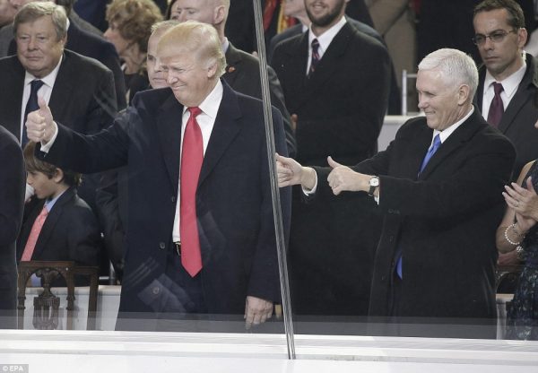 АНУ-ын дэд ерөнхийлөгч Майк Пенс тангараг өргөх ёслолын үеэр:Майк Пенс би, Нэгдсэн улсынхаа Үндсэн хуулийг гадаад дотоодын дайснуудаас хаитгэл үнэмшил, үнэт зүйлсээ хадгалан хамгаалахаа илэрхийлж байна. Би энэхүү албан тушаалыг ямар нэг нөлөөнд авталгүй гүйцэтгэхээ батлан тангаргалаж байна гэж хэллээ.
