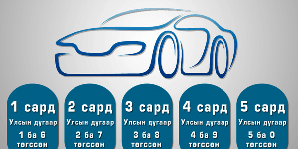 - Монгол Улсын “Авто тээврийн өөрөө явагч хэрэгслийн албан татварын тухай хууль”, “Агаарын бохирдлын төлбөрийн тухай хууль”-ийн дагуу авто тээврийн болон өөрөө явагч хэрэгслийг эзэмшиж байгаа хувь хүн, хуулийн этгээд жил бүр албан татвар төлдөг. Ингэхдээ улсын дугаарын төгсгөлийн тооноос хамаарч сар бүрд хуваарилж өгөх учиртай. Хуулийн дагуу 1 дүгээр сард 1, 6-аар төгссөн улсын дугаартай жолооч нар энэ сардаа багтаж татвараа төлөхийг албаныхан сануулж байна.