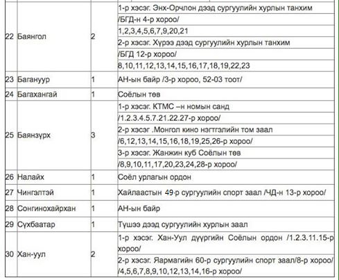 Ардчилсан намын даргад нэр дэвшигчдийн төлөөх санал хураалт өнөөдөр өглөөний 07:00 цагаас оройн 22:00 цаг хүртэл орон даяар болно. АН-ын гишүүд АН-ын даргыг сонгох сонгуульдаа оролцох боломжтой. Нийслэл хотын дүүргүүдийн саналаа өгөх байрны байршилыг танилцуулья.