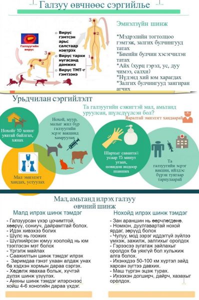 Та галзуугийн сэжигтэй мал, амьтанд уруулж, хазуулж, ноцуулж, самардуулж, шүлсдүүлсэн бол хамгийн ойр эрүүл мэндийн байгууллагад яаралтай хандахыг ЗӨСҮТ-ээс анхааруулж байна.