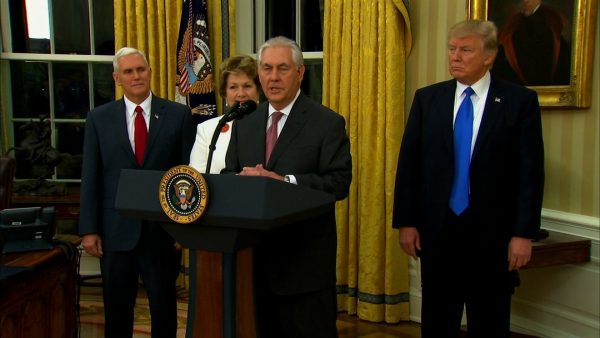 Америкийн нэгдсэн улсын төрийн нарийн бичгийн дарга Рекс Тиллерсон өчигдөр тангараг өргөлөө.Тэрээр одоо 64 настай ба газрын тосны “ExxonMobil” компанийн гүйцэтгэх захиралаар ажиллаж байжээ. Рекс Тиллерсоныг тангараг өргөх ёслолд Ерөнхийлөгч Дональд Трамп, дэд Ерөнхийлөгч Майк Пенс нар оролцжээ. Рекс Тиллерсоныг Сенатын гишүүдийн 56 нь дэмжиж, 43 нь эсэргүүцсэн санал өгчээ.
