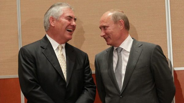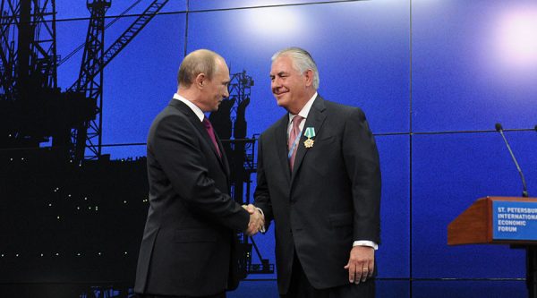 Рекс Тиллерсон ОХУ-ын Ерөнхийлөгч Владимир Путинтэй ажил хэргийн холбоотой байжээ. Тэрээр ОХУ-ын төрийн өмчит компани болох Роснефть компанитай олон тэрбум долларын хэлэлцээрийг хийсэн байна. Рекс Тиллерсон 2013 онд Кремлийн найрамдлын одонгоор шагнуулжээ.