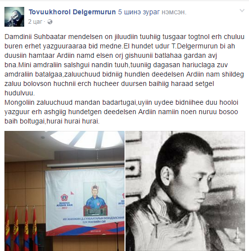 Монголын залуучууд мандан бадартугай, үеийн үедээ биднийхээ дуу хоолой, язгуур эрх ашгийг хүндэтгэн дээдэлсэн Ардын намын ноён нуруу босоо байх болтугай. Хурай, хурай, хурай…” гэж нийтэлжээ.