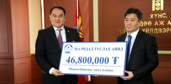 Монгол орны ихэнх нутгаар өвөлжилт хүндэрч, зудын байдалтай байгаа энэ үед Монголбанкны ажилтан, албан хаагчид цалингаасаа хуримтлал үүсгэн, 46.8 сая төгрөгийг малчдад хандив тусламж болгон хүргүүлснийг Монголбанкны Дэд Ерөнхийлөгч Б.Лхагвасүрэн ХХААХҮ-ийн сайд П.Сэргэлэнд хүлээлгэн өглөө.