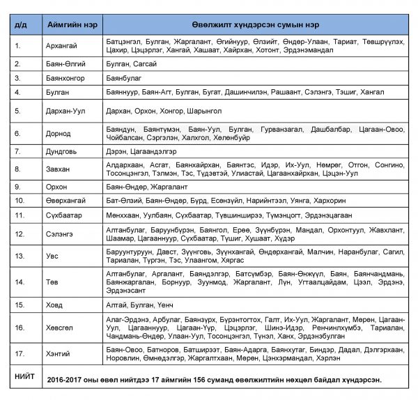 Төв, суурин газрын болон аймаг, орон нутгийн 2016-2017 оны өвөлжилтийн бэлтгэл ажлыг хангах ажлын хүрээнд: