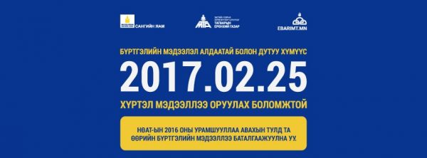 НӨАТ-ын урамшуулал авахаар цахим төлбөрийн нэгдсэн системд хэрэглэгчийн мэдээллээ дутуу бүртгүүлсэн 133’226 татвар төлөгч иргэн байгаа бөгөөд мэдээллээ нягтлан шалгах, засварлах сүүлийн хугацааг Сангийн Яамнаас 2 дугаар сарын 25-ны өдрийг дуустал сунгалаа. Иймд татвар төлөгч та цахим төлбөрийн нэгдсэн системд хэрэглэгчийн хувийн мэдээллээ бүрэн гүйцэд оруулж урамшууллаа аваарай.