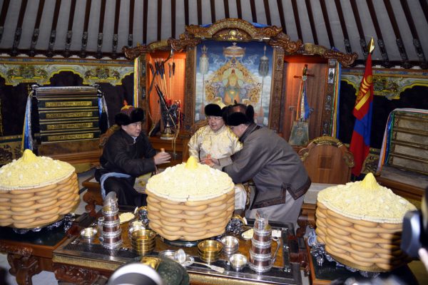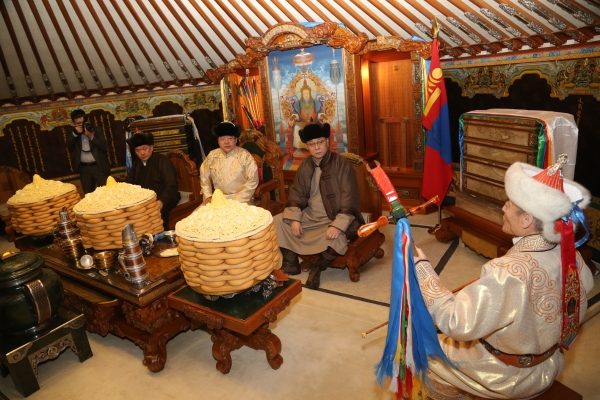 Үүний дараа Монголын бурхан шашинтны төв Гандантэгчинлэн хийдийн гавж Ё.Амгалан, Дашчойлин хийдийн тэргүүн хамба Ч.Дамбажав нар Төрийн хүндэтгэлийн өргөө гэрт морилон ирж Монгол Улсын Ерөнхийлөгч, УИХ-ын дарга, Монгол Улсын Ерөнхий сайд нарт бараалхан золгож, ирж буй улаагчин тахиа жилийн өнгийг хэлэлцэв. Хамба, гавж нар айлсан ирж байгаа гал улаагчин тахиа жилд монголчууд хийморь сүлд өөдөө, хөгжин бадрахын нигууртайг айлтгав.