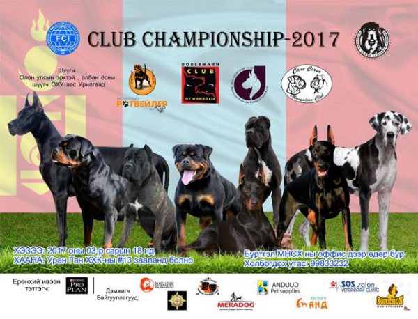 Ротвейлер, Добермен, Кане Корсо, Грейт Дейн үүлдрийн нохдыг сонирхон тэжээдэг эрхэм та бүхнийг өргөнөөр оролцохыг урьж байна