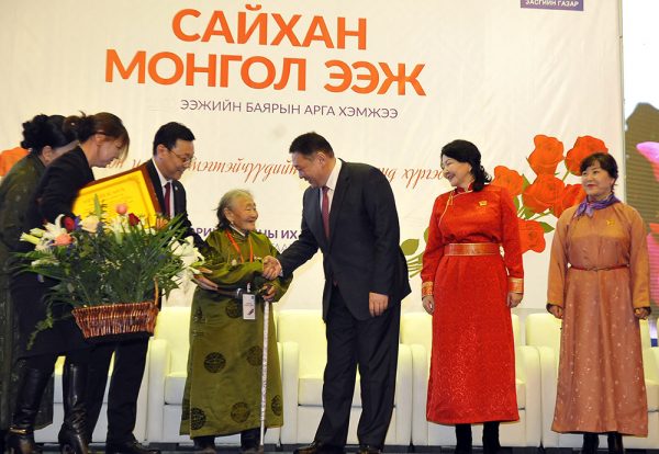 Дараа нь Есөн эрдэнийг бэлгэдэн Улсад олон жил үр бүтээлтэй ажиллаж, олон үр хүүхэд төрүүлж өсгөсөн 9 ээжийг “Сайхан монгол ээж” хэмээн нэрлэн өргөмжлөл олгосон юм. Өргөмжлөлийг Монгол Улсын Их Хурлын дарга М.Энхболд, Монгол Улсын Ерөнхий сайд Ж.Эрдэнэбат нар гардуулан өгөв гэж УИХ-ын Хэвлэл мэдээлэл, олон нийттэй харилцах хэлтсээс мэдээллээ.
