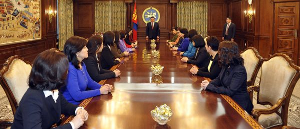 Монгол Улсын Их Хурлын дарга М.Энхболд Олон улсын эмэгтэйчүүдийн өдрийг тохиолдуулан төр, засгийн өндөр албан тушаал хашиж байгаа эмэгтэйчүүдийн төлөөллийг хүлээн авч, баяр хүргэв.