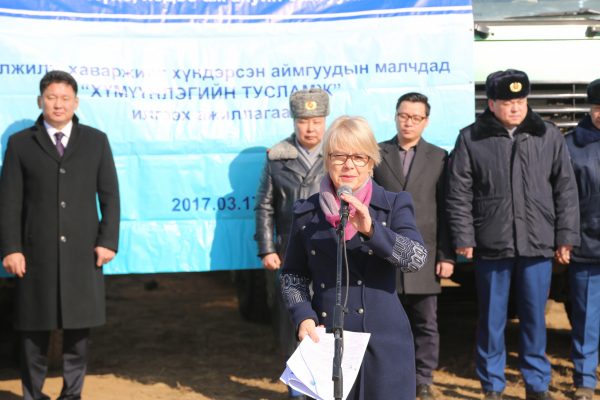 Тусламжийн цувааг хөдөлгөх ёслолын ажиллагаанд Монгол Улсын Шадар сайд У.Хүрэлсүх оролцож, өвөлжилтийн нөхцөл байдал хүндэрсэн аймаг сумдад хүмүүнлэгийн тусламж үзүүлсээр байгаа НҮБ, суурин төлөөлөгчийн газрынханд талархаж буйгаа илэрхийлсэн.