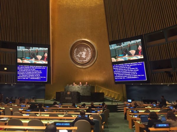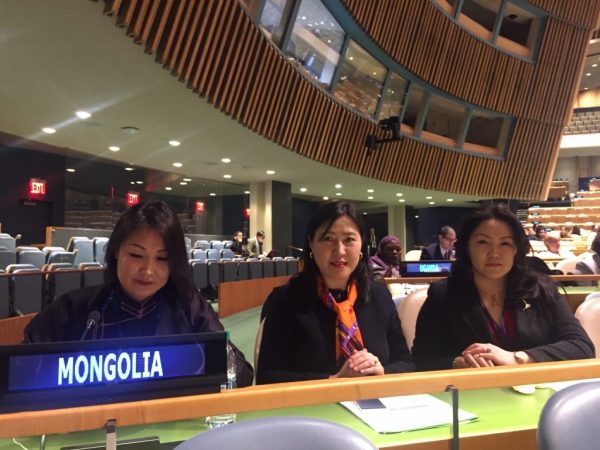 Нью-Йорк хотноо 2017 оны 3 дугаар сарын 13-нд эхэлсэн НҮБ-ын Эмэгтэйчүүдийн аж байдлын комиссын 61 дүгээр чуулганд Хөдөлмөр, нийгмийн хамгааллын дэд сайд С.Мөнгөнчимэг тэргүүтэй Монгол Улсын Засгийн газрын төлөөлөгчид оролцож байна.