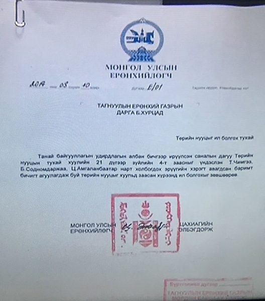 Ингэснээр Нийслэлийн прокурорын мөрдөн байцаах ажиллагаанд хяналт тавих хэлтсийн дарга Ж.Сандагсүрэн МҮОНТ-ийн “Цагийн хүрд” мэдээллийн хөтөлбөрт оролцож, Төрийн нууцын зэрэглэлээс гаргасан мэдээллээс дурдаж, яллагдагч нарын хэргээ хүлээж байгаа, гэмт хэрэг үйлдсэнийг нь нотлох баримт бүхий дөрвөн видео бичлэг болон С.Зориг агсны гэргий Д.Булганы тухайн хэргийг үйлдсэн болох хэрэгтнүүдийг дүрсэлсэн аман зургийн эх хувибарыг үзүүлсэн юм.