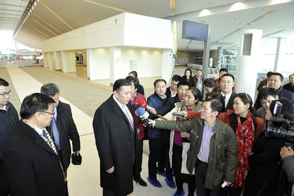 Энэ үеэр Улсын Их Хурлын дарга М.Энхболд сэтгүүлчдэд мэдээлэл өглөө. Тэрбээр, Би УИХ-ын гишүүнээр Төв аймгаас сонгогдсон. Манай тойргийн томоохон бүтээн байгуулалтын ажил бол Хөшигийн хөндийн олон улсын нисэх онгоцны энэ буудал юм. Буудал ашиглалтадорох хугацаа дөхөж байна. Монгол Улсын гадаадад гарах гарц, улс орны нүүр царай болох онцгой объект учир ажилтай нь танилцаж байна. Одоогоос арваннэгэн жилийн өмнө би Ерөнхий сайдаар ажиллаж байхдаа буюу 2006 оны гуравдугаар сард Япон Улсад айлчлах үеэрээ тус улсын Ерөнхий сайдад олон улсын нисэх буудал барихад тусалж, дэмжих санал тавьсан. Үүнээс хойш дөрвөн сарын дараа Японы Үрөнхий сайд Ж.Коизүми манай улсад айлчлахдаа шинэ нисэх онгоцны буудал барих саналыг хүлээн авсан гэдгээ хэлсэн. Улмаар 2008 оны тавдугаар сард УИХ-аар зээлийн гэрээ соёрхон батлагдсан юм.
