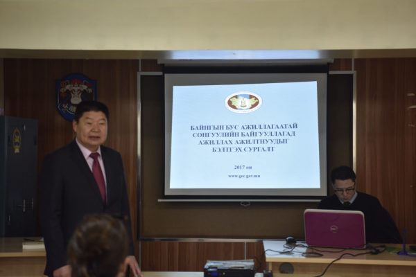 Монгол Улсын Ерөнхийлөгчийн 2017 оны ээлжит сонгууль зохион байгуулах бэлтгэл ажлын хүрээнд байнгын бус ажиллагаатай сонгуулийн байгууллагад ажиллах төрийн захиргааны болон төрийн үйлчилгээний албан хаагчдад зориулсан сургалтыг өнөөдөр Чингэлтэй дүүргийн 6 дугаар хорооны Иргэний танхимд зохион байгууллаа.