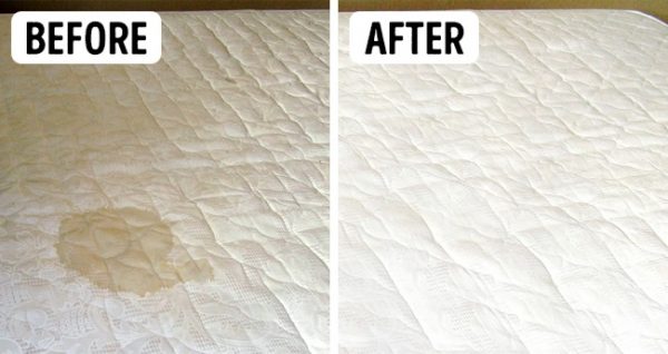 Хэрэглэх зүйлс: 3% -ийн устөрөгчийн хэт исэл, 3 халбага хүнсний сод, шингэн саван хэрэг болно. Үүнийг хэрхэн ашиглах вэ: Шүрших саванд устөрөгчийн хэт исэл, сод холино. Матрасруу шүршиж 5-10 минут хүлээнэ. Та хурдан хатаахыг хүсэж байгаа бол сэнсээр үлээж хатааж, толбо арилсан эсэхийг харж болно. Толбо арилаагүй үлдсэн бол дахин цэвэрлэх боломжтой ингэснээр толбо бүрэн арилна.
