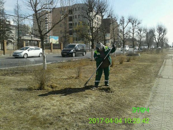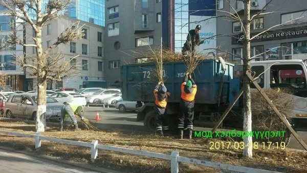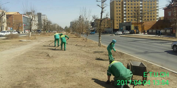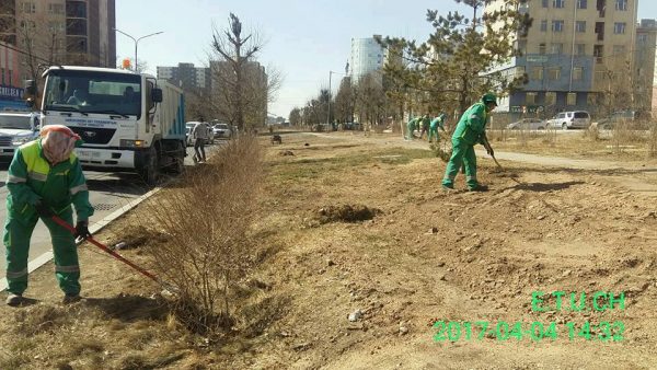 Нийслэлийн “Хот тохижилтын газар” ОНӨААТҮГ-ын Ногоон байгууламжийн алба нийтийн эзэмшлийн гудамж талбайн хаврын арчилгааны ажлаа 2017 оны гуравдугаар сарын 28-ны өдрөөс эхлүүллээ. Уг ажлын хүрээнд хариуцсан нийтийн эзэмшлийн хуваарьт гудамж талбайн ногоон байгууламжийн мод, ургамлын хашлагын хог, навчийг цэвэрлэн мод, бут сөөгний тогооны хөрс сийрүүлэлтийг хийж байна.