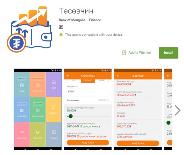 Монголбанк, Сангийн яам, Санхүүгийн зохицуулах хороо, БСШУCЯ хамтран “Олон нийтийн санхүүгийн суурь мэдлэгийг дээшлүүлэх үндэсний хөтөлбөр”-ийг хэрэгжүүлж буй. Тус хөтөлбөрийг 2016-2021 он хүртэл хэрэгжүүлэх ажлын хүрээнд Монголбанк иргэдийн санхүүгийн боловсролд зориулж, “Төсөвчин” аппликэйшнийг ашиглалтад орууллаа. Энэхүү аппликэйшнээр дамжуулан хувь хүн санхүүгээ удирдах, орлого, зарлагаа хянах, хадгаламж, хуримтлалын төлөвлөгөө гаргах зэрэг өргөн боломжтой юм. Та төсөвчин аппликэйшнийг iOS болон Андройд үйлдлийн систем бүхий аль ч төрлийн ухаалаг төхөөрөмжөөр үнэгүй татан авах боломжтой. Та доорх Apple store болон Google play store-н лого дээр дарж татаж авч болно.