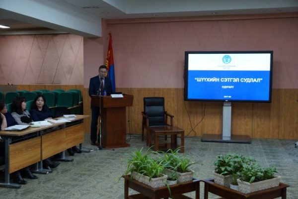 Шүүхийн судалгаа мэдээлэл, сургалтын хүрээлэнгийн сэтгэл зүйч Ш.Батболд “Хуульч мэргэжлийн сэтгэл зүйн онцлог” сэдвээр лекц уншсанаар энэ өдрийн сургалт эхэлсэн.