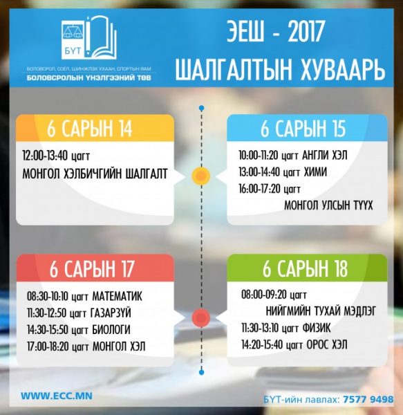 Элсэлтийн ерөнхий шалгалтын хуваарь гарлаа