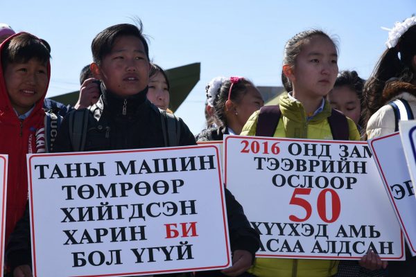 Өдөрлөгт оролцож буй багачууд “Хурдаа хасч ирээдүйгээ гэрэлтүүлцгээе”, “Бага насны хүүхдийг тусгай суудал хэрэглэж тээвэрлэх ёстой”, “Эрүүл иргэн баймаар байна”, “Бид мөрөөдөлдөө хүрмээр байна”, “таны машин төмрөөр хийгдсэн харин би бол үгүй”, “Та биднийг хамгаалаач” хэмээн уриаллаа.
