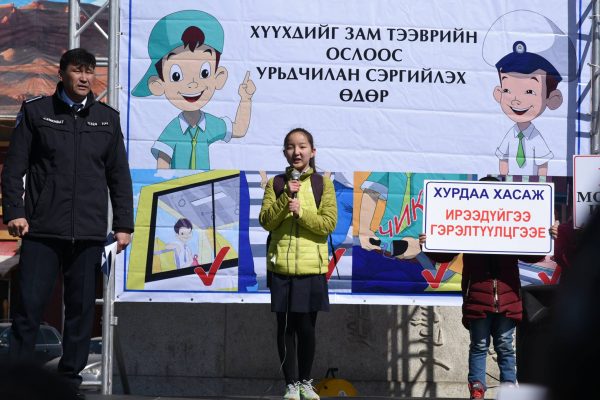 Тус арга хэмжээнд оролцогч хүүхэд багачуудын дунд “Томчуудад хүргэх миний захидал” захидалын уралдааныг зохион явуулж, зам хөдөлгөөний аюулгүй байдлын талаар мэдлэг олгох “Сурагчийн ном” зөвлөмж, “Би өөрөө” сэтгүүлүүдийг бэлэглэв.
