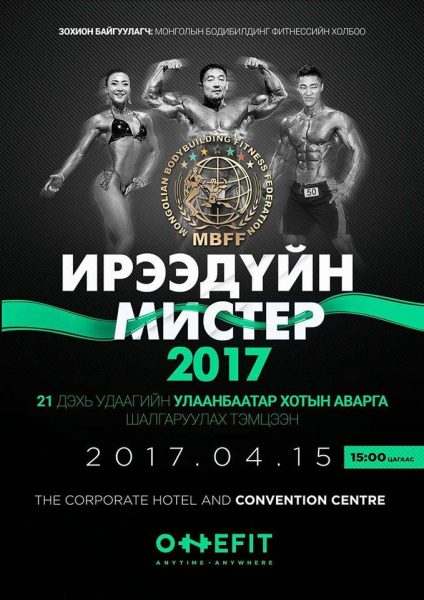 “Ирээдүйн Мистер 2017”- 21 дэх удаагийн бодибилдингийн хотын аварга шалгаруулах тэмцээн “Корпорейт Конвейшн центр” төвд 2017 оны 04-р сарын 15-ны Бямба гарагт 15:00 цагт болно.