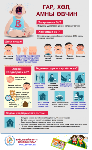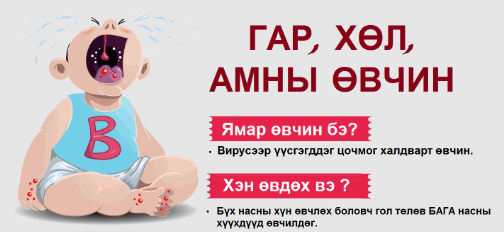 Сүүлийн үед нэмэгдэх хандлагатай байгаа гар, хөл, амны өвчнөөс хэрхэн урьдчилан сэргийлэх талаар Нийслэлийн эрүүл мэндийн газраас гаргасан дараахи зөвлөмжийг иргэд, олон нийтэд хүргэж байна.