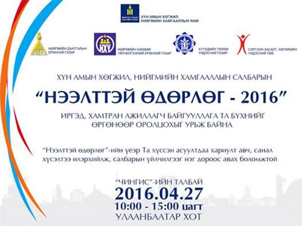 Энэхүү эрхэм, хүндтэй баярын өдрийг тохиолдуулан Хүн амын хөгжил, нийгмийн хамгааллын салбарын “Нээлттэй өдөрлөг”-ийг энэ сарын 27-ны өдөр Чингисийн талбайд зохион байгуулах гэж байна.