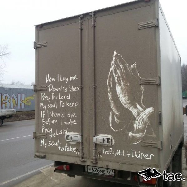 Москва хотын оршин суугч Никита Голубева бохир машин дээр зураг зурдаг байна. Бохир машин дээрх урлагийн бүтээлүүдээс хүргэж байна.