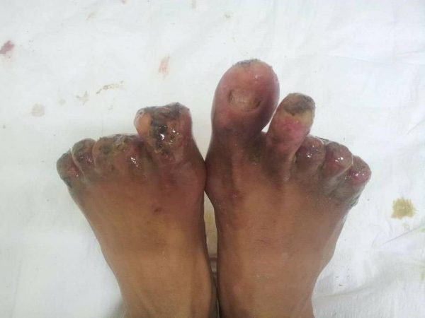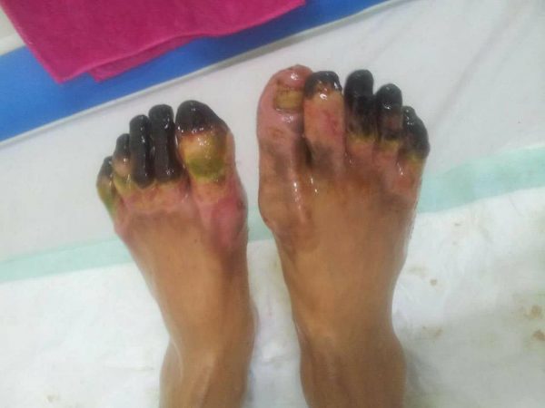 Энэ бүхний дараагаар харуулын байр руу оруулсан. Шөнө халуу дүүгэж чимчигнэж хөнжлөөрөө ороон үүр цайтал унтаж чадаагүй хүлээсэн. Өглөө цайны цагаар босч цайгаа уух гэтэл хөл цэврүүтэн цайрч таавчиг өмсөлтгүй хавдсан байсан. Харуулын даргад энэ тухай хэлэхэд дээшээ мэдэгдэж анхан шатны эмчилгээ авсан. Эмчилгээний явцад хуруу тайрахаар болж 2 сарын 13-нд хагалгаанд орж хөлийн 9 хурууг тайруулсан бүтэн биеийн оншилгоонд ороход элэг өөрчлөлттэй гарсан. 3 хүүхэд 1-р зэргийн хөлдөлт би 3-р зэргийн хөлдөлттэй байсан. Хагалгаанд орохоос өмнө нугасанд гуурс суулгасан. Гуурс сугарч нугас руу идээлснийг цэвэрлэж бүтэн биеийн норкозонд орсон. Эмнэлэгт байх хугацаандаа сэтгэл санааны гүн хямралд орсон энэ бүгдийг даваад гарах тэсвэр тэвчээр надад байсан 3 сарын 16-нд эмнэлэгээс шарх эдгээгүй байхад гаргасан.