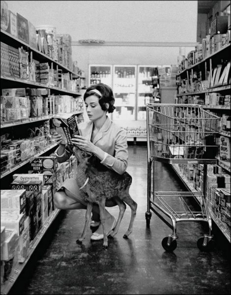 Одри Хепберн тэжээвэр бугатайгаа дэлгүүрт 1958 он