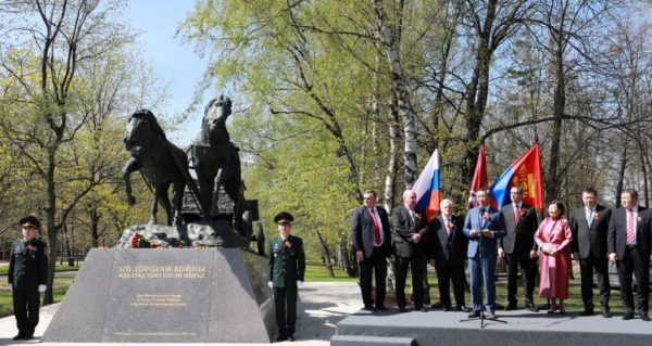 Аугаа Эх орны дайны Ялалтын 70 жилийн ойг тохиолдуулан бүтээсэн Монголын ард түмний бэлгийн “Ялалтад тэмүүлсэн морьд” хөшөөний нээлтийн ёслолын арга хэмжээ Москва хотын Хүндэтгэлийн дэнж дэх Ялалтын цэцэрлэгт хүрээлэнд 2017 оны 5 дугаар 5-ны өдөр болов.